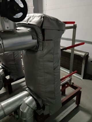 Смонтировать термочехол по форме оборудования, учитывая расположение вырезов и выступающих частей. При наличии дополнительных креплений произвести ими предварительную фиксацию, после чего приступить к фиксации основными креплениями (ремнями).